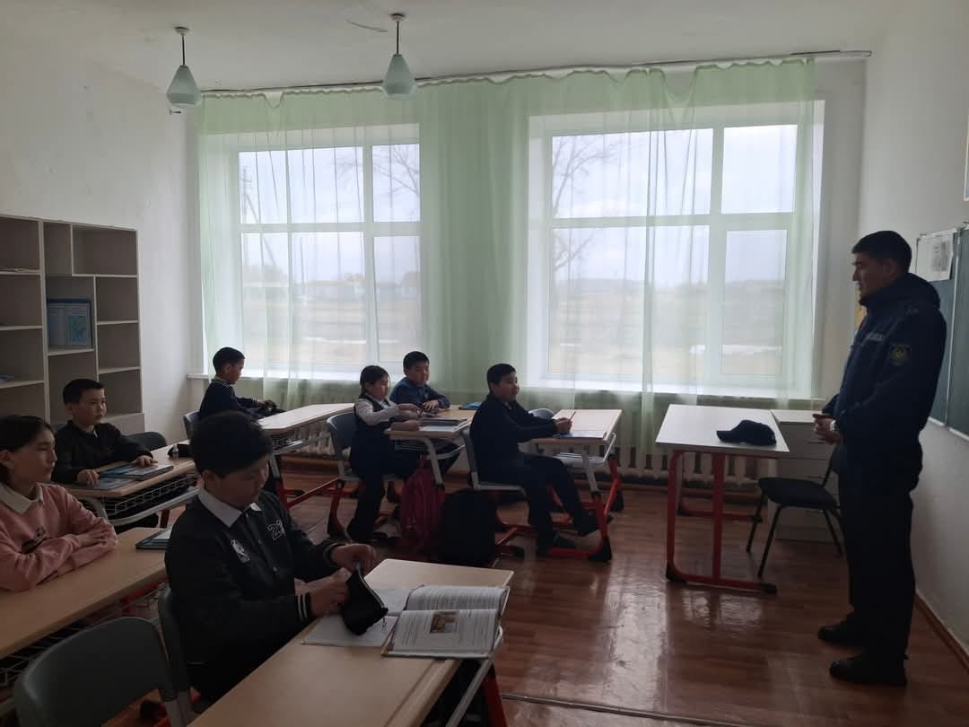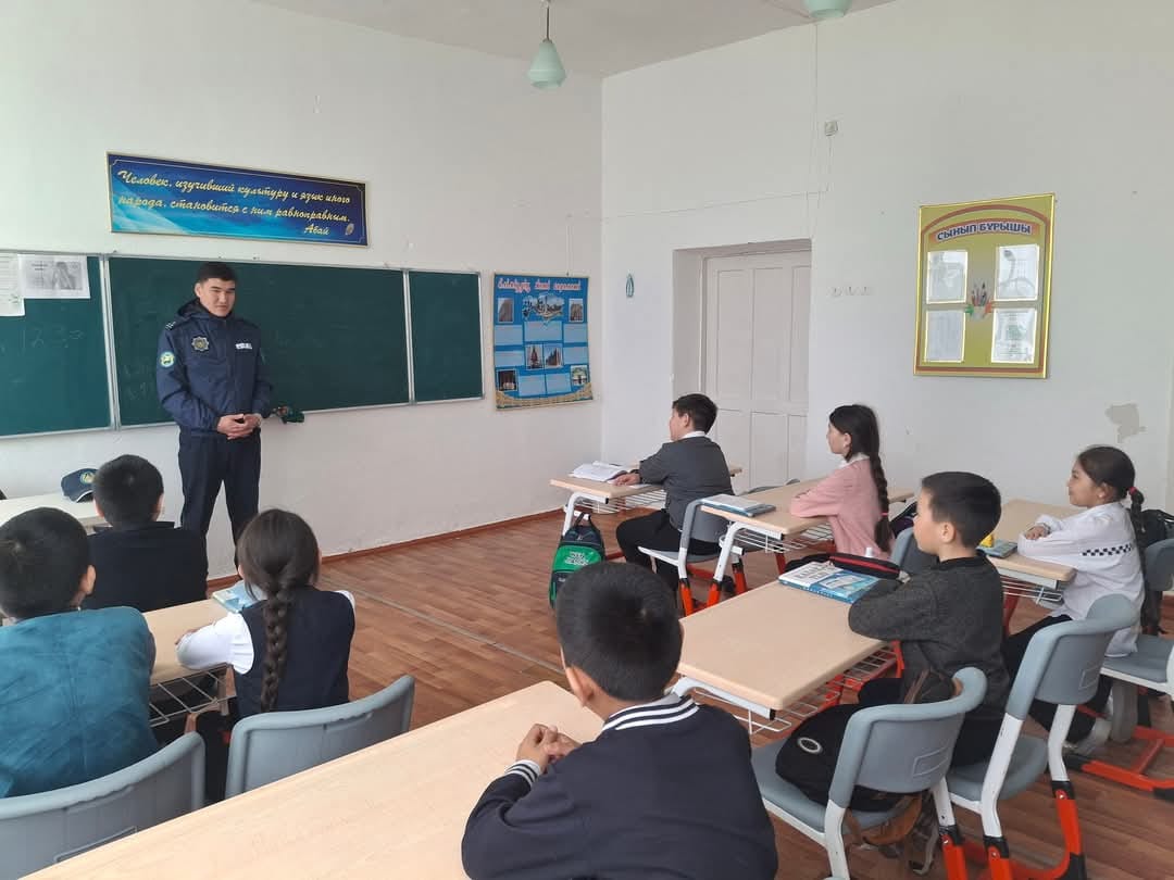 Ақсу негізгі мектебінде 4 сәуір құқық-бұзушылық және зорлық-зомбылықтың алдын-алу мақсатында учасуелік полиция инспекторы полиция аға лейтенанты Ишматов А.Е әңгіме жүргізді.